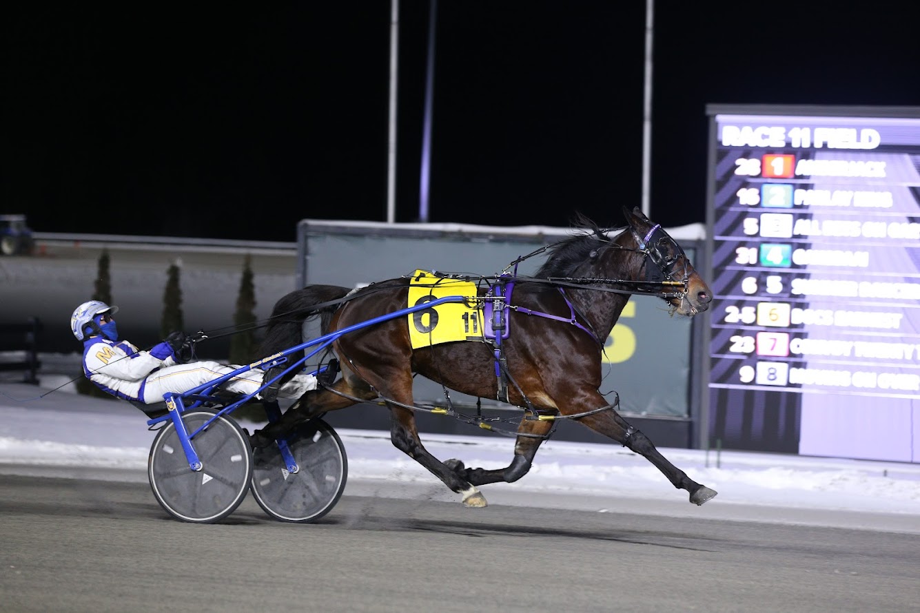 Despite the low temperatures, Docs Earnest, trained by Kayla Hendry, earned his second career score courtesy of a 1 1/4-length score in the eleventh race on Saturday night.