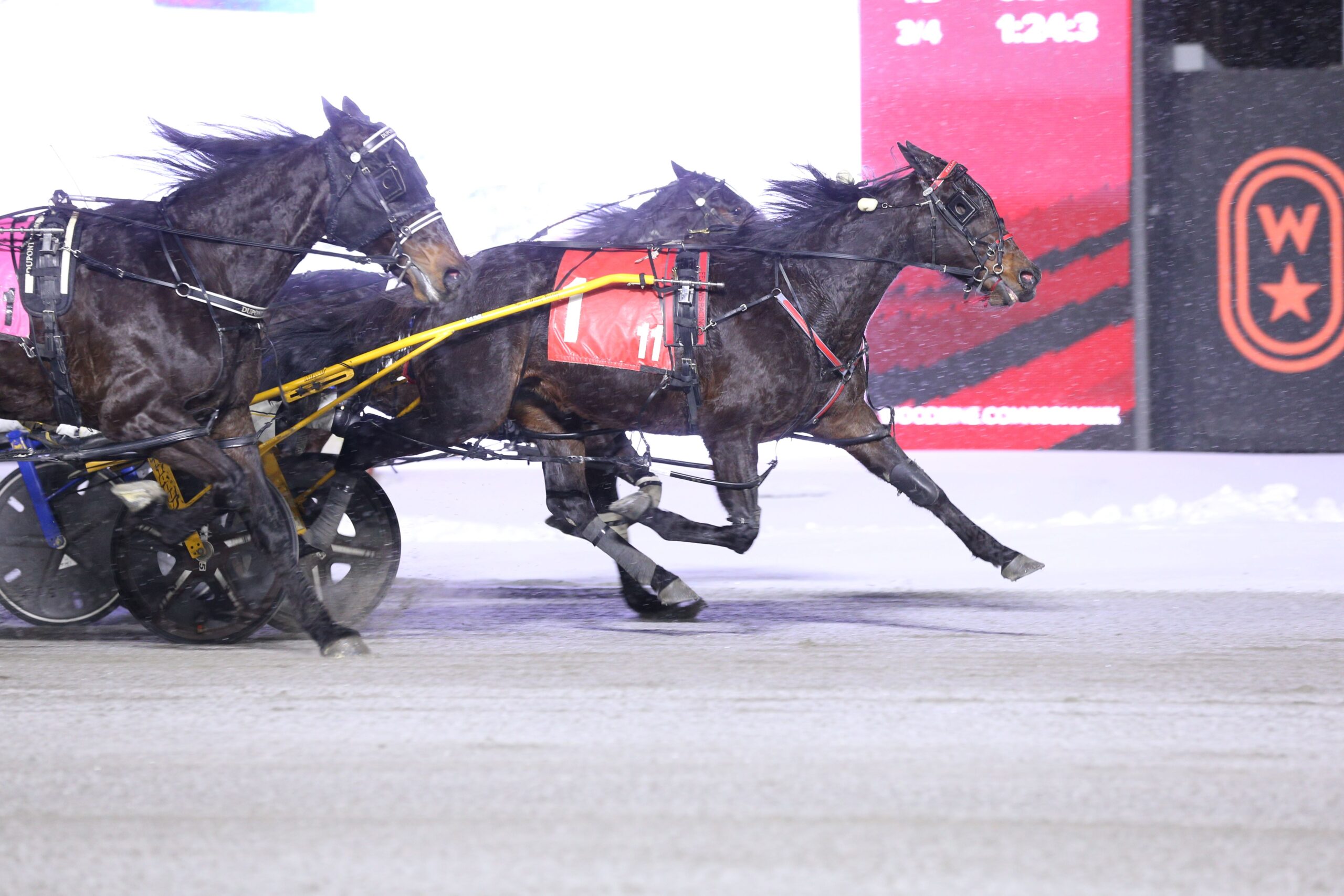 Brue Hanover, with Canada’s reigning driver of the year James MacDonald in tow, outdueled snowy conditions and five foes to win the first $40,000 Open Pace of the year at Woodbine Mohawk Park.