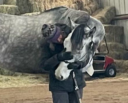 Carol Morison had no intention of adopting a horse that day at the farm five months ago – and then she heard a voice calling out to her. It was last fall when Morison decided to make the 55-minute drive southwest from her home in Uxbridge, Ontario, to the picturesque 100-acre farm in Hillsburgh owned by the LongRun Thoroughbred Retirement Society. Established in 1999, LongRun is one of the most respected horse retirement and adoption organizations and the first industry-funded adoption program in Canada. Curiosity was the main reason behind the visit to see, first-hand, LongRun’s first-ever Graduate Horse Showcase, a day dedicated to celebrating the organization’s graduates and their adopters. It also happened to be Morison’s birthday. “My farrier has a Thoroughbred, and he was going that day,” recalled Morison. “Lou and (Canadian Horse Racing Hall of Fame inductee, trainer) Mike Keogh are very good friends of mine, and Lou had mentioned that they were going to see one of the horses they had donated to LongRun. “I said to my husband Barry, ‘Wouldn’t it be great to see Lou and Mike and the horses who are there?’ So, that’s what we did. We had no plans other than seeing what was going on at the farm with two good friends.” Signing adoption papers for an ex-racehorse was not on her radar. Until it was. “When we got to the farm, we went over to the place where they were selling tickets for their fundraiser,” started Morison. “When I got to the table, a horse whinnied to me. I looked over and there was this big, beautiful grey horse looking out his stall.” When he called again, Morison went over to take a closer look. “I walked over, and it was just something, this familiarity that he seemed to show. I looked at him and he was just stunning. There was a feeling that came over me.” It prompted her to find out more about the gallant-looking grey. The more Morison heard, the more enamoured she became with him. “I wondered what the story was with this horse. I spoke with a lady, and she had another woman come over to talk to me. She told me all about the horse. “I asked Mike to come over and look at the horse with me. Mike stood outside the stall, and he liked the horse too.” The one named Silver Peak. Pedigree – his sire is multiple graded stakes winner Quality Road and his dam is Grade 3 stakes winner Dreamologist – suggested he could be a good one. Bred and owned by LNJ Foxwoods, his life on the racetrack would yield just three starts. After a second in his debut on November 13, 2022, at Woodbine, he broke his maiden next time out in a one-mile turf race at Tampa Bay Downs in February 2023. Three months later, Silver Peak was tenth in a 1 1/16-mile test over the E.P. Taylor turf at Woodbine in what would be the final race of his career. He worked steadily thereafter, but in early October 2023, the decision was made to retire the horse trained by Canadian Horse Racing Hall of Fame inductee Josie Carroll. “Knowing our horses are loved off the track is so reassuring,” said Jaime Roth, who, along with her parents Larry and Nanci, are the names behind family-owned LNJ Foxwoods, one of the sport’s major outfits in North America and abroad. “All our horses are important. “The Dreamologist family is very special to us for a number of reasons, so this is the cherry on top.” On the drive home from LongRun, Morison and her husband discussed possible next steps with Silver Peak, including filling out adoption forms. The plan to start the forms back at their farm didn’t pan out. “On my way home, I’m filling out my application for him,” said Morison with a laugh. “That wasn’t the idea when we went to the farm, but there was just something about him that is hard to put into words.” A few days after everything was submitted, she received an email from LongRun. Morison was nervous as she prepared to read it. “I got an email on the Tuesday after we visited the farm, and we were just so excited. They check all the references – which was Lou and Mike – and do their due diligence, which is fantastic. They were going to send someone to our farm to have a look and inspect things to make sure it was the right home for Silver Peak. “At that point, I asked if Lou and I could go up and see him again. I hadn’t seen him outside of the stall, so I wanted to have more of a personal look at him. They were very agreeable to that, so we went there and got to see him again.” Morison felt an even stronger connection this time. The same thought kept coming back to her. “It felt like him being with us was meant to be.” A little less than two weeks after Morison first met Silver Peak, he was on a trailer headed to Uxbridge. The bond they shared grew even stronger almost from the moment they arrived at the farm. “He trusts me, and he responds to me. He picks up on things so quickly. It’s as if he is saying to me, ‘Okay, you’ve shown me this, what else do you have?’ “I worked with him as I would with any young horse, and he took to it all. I have been teaching him the verbal and physical cues for Liberty work (relating to any work done with horses while they’re loose, without a rope or reins, so they have the freedom to move around at will). Eventually, I will work with him in the round pen, off line, and will look towards the beginnings of Liberty.” “We have started to train him under saddle in the fundamentals of dressage. He enjoys the interaction and loves to show off.” Silver Peak is acutely aware of when Morison is close at hand, especially at a particular point in the day. Silver Peak “When he knows I am at the house, he is almost like a sundial. When it gets closer to feeding time, I will see him stand at a certain point. He will look at the house and then he will move a little closer to the house. At the end, he is looking straight at the house from the bottom of his paddock, letting you know it’s time for him to
