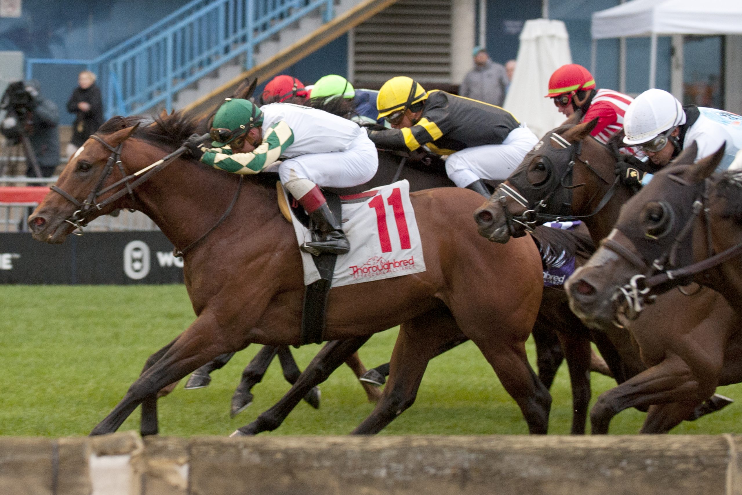Something’s brewing Artie’s Storm, with Emma-Jayne Wilson in the irons, rallied down the lane to take Saturday’s $150,000 Durham Cup (G3) for owner-trainer Paul Buttigieg. A 5-year-old son of We Miss Artie-Tiz Stormy Now, Artie’s Storm fended off high-profile runner Algiers (IRE) by a half-length for top prize in the 1 1/16-mile race over the Tapeta. Artie’s Storm and jockey Emma-Jayne Wilson winning the Durham Cup on October 7, 2023 at Woodbine (Michael Burns Photo) Back in the win column After an off-key effort in the Canadian Stakes (G2T) on September 9, Fev Rover (IRE) was back on the winning track with a sensational score in Sunday’s $750,000 E.P. Taylor Stakes (G1T), riding the rail to victory with Javier Castellano on board. The 5-year-old bay mare is trained by dual hall of famer Mark Casse for owner Tracy Farmer. Fev Rover (IRE) and jockey Javier Castellano winning the E.P. Taylor Stakes on October 8, 2023 at Woodbine (Michael Burns Photo) Big-time finish Big Invasion, trained by Christophe Clement for Reeves Thoroughbred Racing, rallied stoutly down the long E.P. Taylor turf stretch to come out on top in a thrilling renewal of the $250,00 Nearctic Stakes (G2T). Piloted by Dylan Davis, the 4-year-old son of Declaration of War-Curls in Place is now 8-3-1 from 14 career starts. Big Invasion and jockey Dylan Davis winning the Nearctic Stakes on October 8, 2023 at Woodbine (Michael Burns Photo) Dancing machine Dancing Duchess, a 2-year-old daughter of Munnings-Duchess Dancer, rebounded from a tough start last time out to take the $200,000 Algonquin Stakes for trainer Mark Casse and owner Tracy Farmer. After a pair of runner-up efforts in the My Dear and Soaring Free, the dark bay, bred in Ontario by Mitchell Kursner, recorded her first stakes triumph on Sunday at Woodbine. Dancing Duchess and jockey Javier Castellano winning the Algonquin Stakes on October 8, 2023 at Woodbine (Michael Burns Photo) Second time is the charm Sounds Practical, a 2-year-old daughter of Practical Joke-Sonic Cyster, went one better after finishing second in her career bow on September 9 at Woodbine. Trained by John Mattine for RCC Racing Stable Ltd. and Realm Racing Stables, the bay filly, bred in Ontario by Saintsbury Farms Inc., won Saturday’s fifth race, and paid $4.40 for the victory. Sounds Practical and jockey Ryan Munger winning Race 5 on October 7, 2023 at Woodbine (Michael Burns Photo) Worth hearing “This is a race we are very keen to support and to be here and thanks to everybody here at Woodbine for looking after us so well and being very supportive to us all.” – Trainer Charlie Appleby, who sent out Nations Pride (IRE) to win the Canadian International (G1T) on Sunday. Worth watching Watch as Nations Pride (IRE), with William Buick riding, tracks down a game Royal Champion (IRE) to take all the spoils in the 84th edition of Woodbine’s iconic Canadian International (G1T). Worth knowing: It’s a five-pack of stakes action this Saturday and Sunday. On Saturday, the $250,000 Cup and Saucer, $150,000 Ontario Fashion (G3) and Ontario Matron (G3) share the spotlight. Sunday’s card showcases the $125,000 Glorious Song and $125,000 Display. /stakes-schedule/ Share This:Share