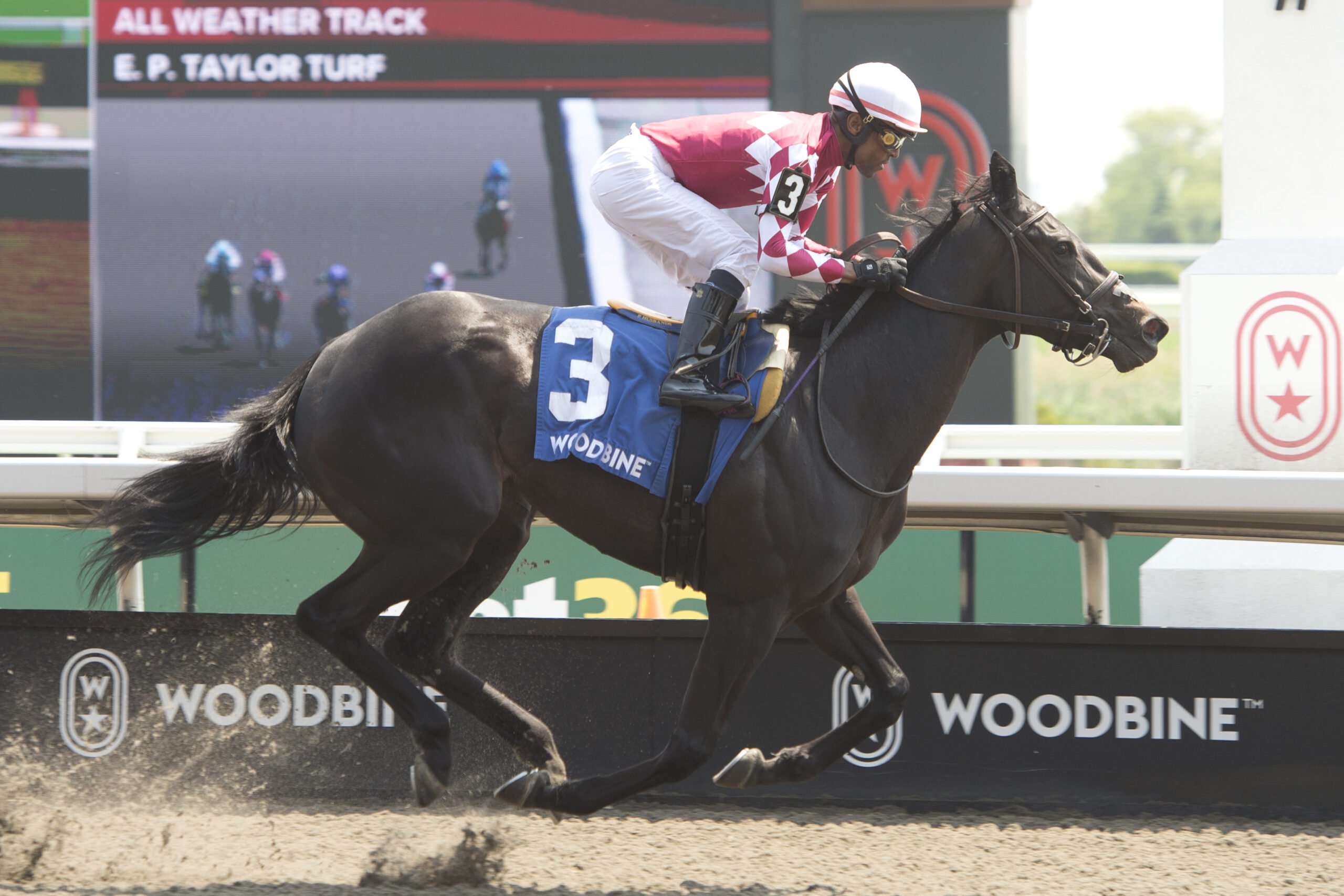 TORONTO, June 7, 2025 – D.J. Stable’s Winterberry, sent off as the 2-1 second choice, wired her rivals in the $125,000 Fury Stakes Presented by Stella Artois, Saturday at Woodbine. After a fifth in the Star Shoot Stakes on April 26 to start her sophomore season, Winterberry, trained by Mark Casse, was back on the winning track courtesy of a strong showing in the Fury, a seven-furlong main track event for 3-year-old fillies foaled in Canada. Under Patrick Husbands, the daughter of Frosted out of the Bellamy Road mare Dreams Are Free broke alertly and was tracked to her outside by 25-1 Nata Trouble through a relaxed opening quarter in :23.52. Winterberry maintained her one-length advantage over Nata Trouble through a half in :46.38 and was still travelling comfortably as the lead duo straightened for home. A stubborn Nata Trouble kept up the pressure and was a half-length behind at the stretch call, but Winterberry skipped away in the final 100 yards to cross the wire a 1 ¼-length winner in a time of 1:22.87. Nata Trouble held second, 1 ¼ lengths ahead of Shifty, also owned by D.J. Stable. Aristella and Miss Pierre rounded out the order of finish. Winterberry and jockey Patrick Husbands winning the Fury Stakes on June 7, 2025 at Woodbine (Michael Burns Photo) “She made a winning move by the quarter pole, she came off to her right lead, she put her head up and just backed out,” said Husbands, of the Star Shoot. “She came back today and showed that she was back.” Winterberry had a winning debut last August, a 5 ½-length victory at 6 ½ furlongs over the Woodbine main track. Next time out, she was sixth in the Grade 1 Summer, at one mile on the E.P. Taylor turf. The dark bay rebounded with a three-quarter length score in the seven-furlong Glorious Song Stakes on October 13 and closed out her rookie campaign with a fifth in the six-furlong Shady Well Stakes on November 23. “She’s 80 percent better than last year,” said Husbands, of the filly’s maturity level. “Last year, she started showing you not to get in her way – just go with the flow. She has come a long, long way.” Husbands is confident Winterberry can handle two turns. “Definitely. She is always showing me she would get two turns. She’s a little quirky, but you’ve got to go with the flow.” Bred in Ontario by Anderson Farms Ont. Inc., Winterberry was a $210,000 purchase at the 2023 Keeneland Association September Yearling Sale. It was the ninth Fury triumph and third straight for Casse. Last year, he won with Olivia Rose. Winterberry returned $6.80 for the win. Chris Lomon, Woodbine Share This:Share